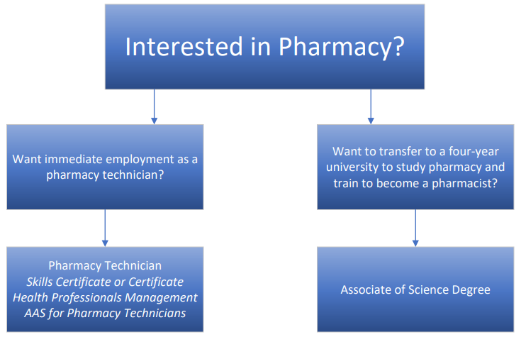 Health Professionals Management Associate of Applied Science for Pharmacy Technicians: Any student wishing to pursue an Associate Degree can apply all credits from the Pharmacy Technician Skills Certificate or Certificate programs toward an Associate of Health Professionals Management for Pharmacy Technicians degree. This degree may be desirable for students seeking to expand their knowledge and skills, and potentially lead to Pharmacy Technician supervisory roles. Students may be eligible to earn credits for professional experiences and previously completed courses.